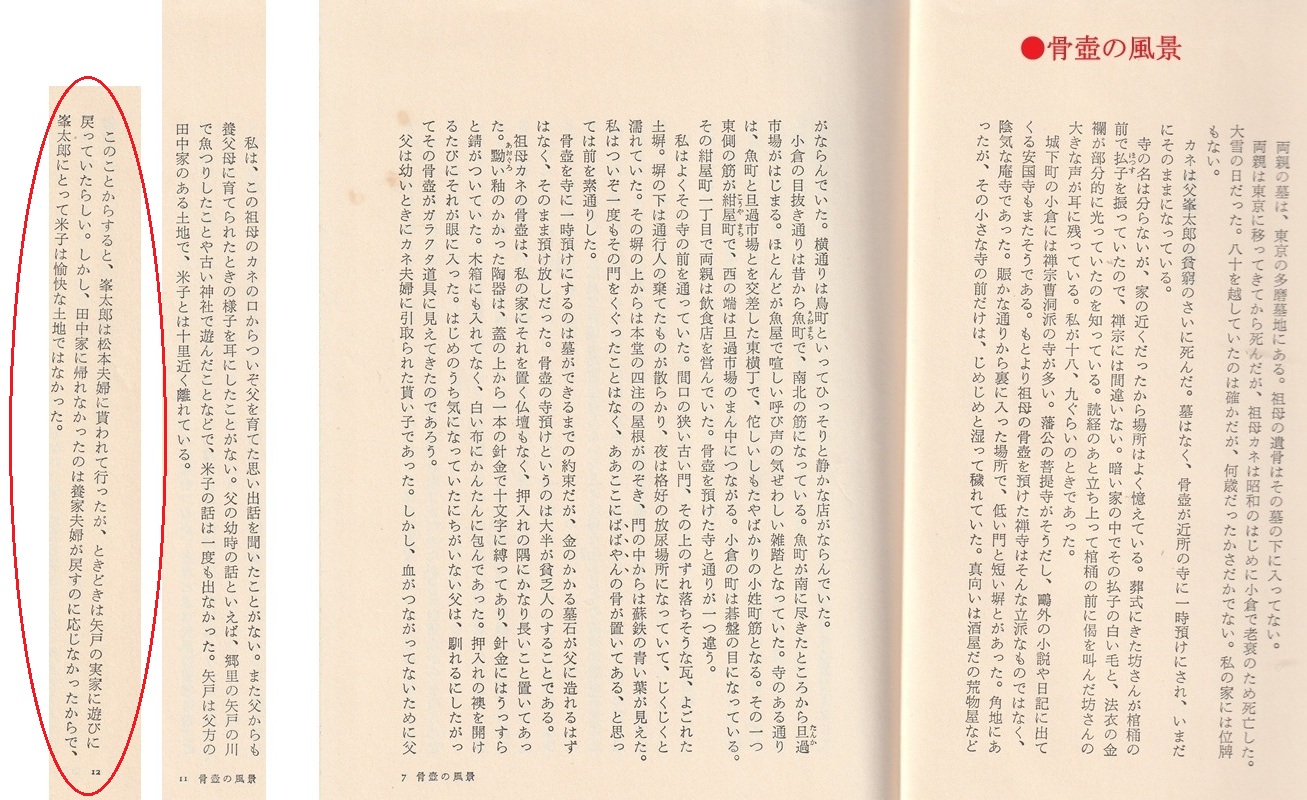 ●自叙伝的作品である。父(峯太郎)の養父の名前が健吉とされているが、米吉が正確のようだ。