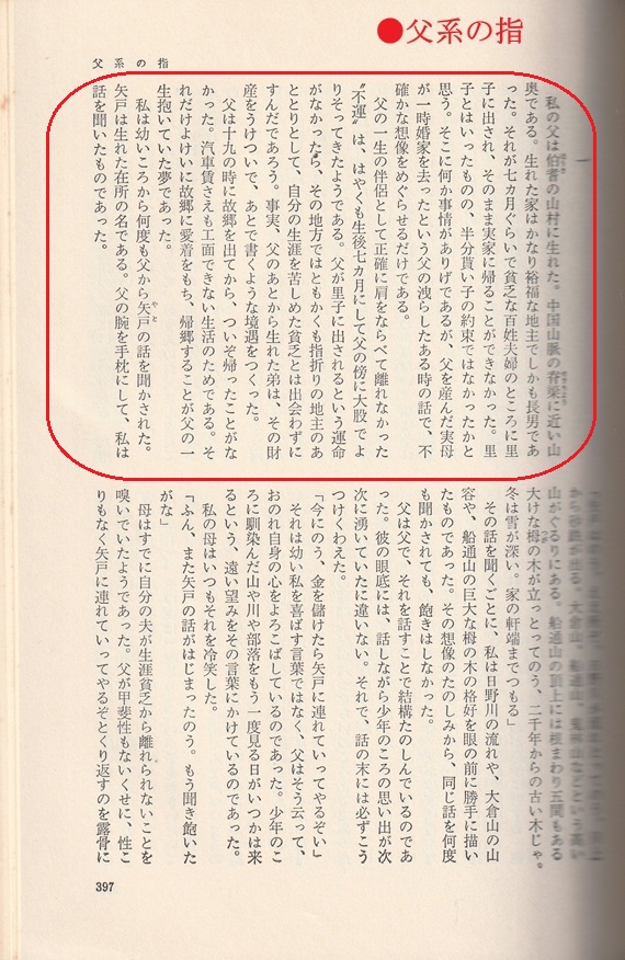 ①■「父系の指」 (自叙伝的作品) (1955年(昭和30年):新潮9月号 |