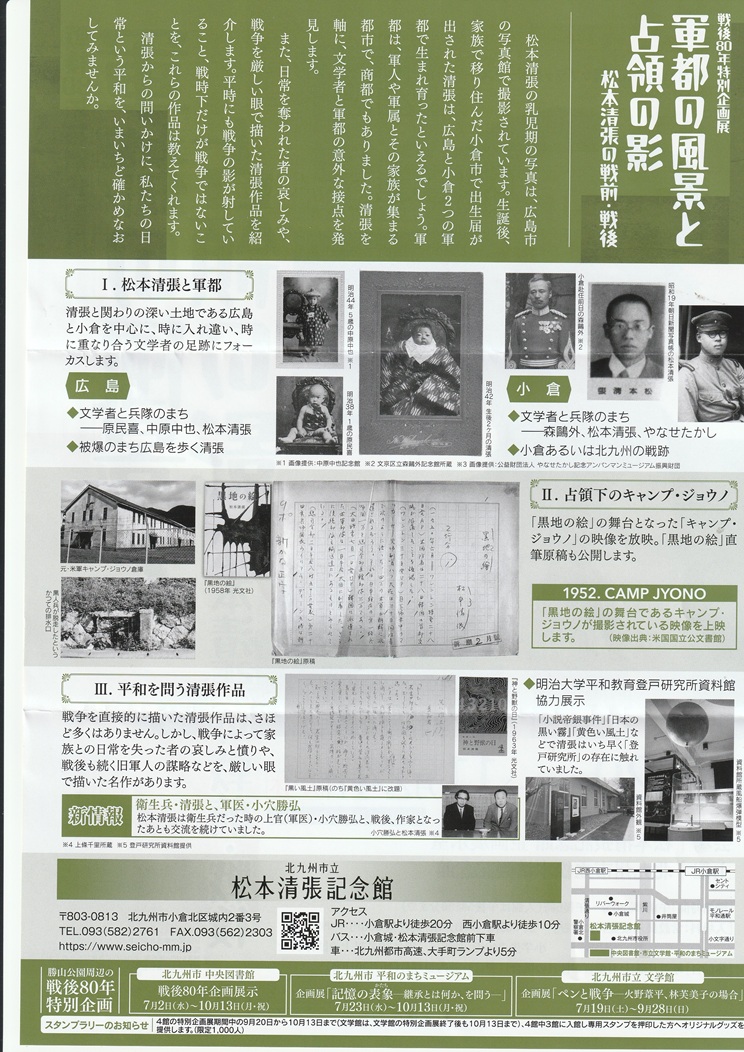 松本清張の戦前・戦後 日時:令和7年9月20日~11月24日 会場:松本清張記念館 企画展示室 【観覧できそうにありません】 |